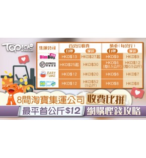 [詳情]近年網購成為新常態,當中最為人熟悉必定是淘寶。若果錯誤選擇集運公司,運費隨時比貨品價格更高!TOPick為大家比拼8間大型集運商的運費,下次網購就能慳回不少。 集運公司首公斤收費續重(每公斤)DimBuy自取 HKD$13自取 HKD$9派送 HKD$2...